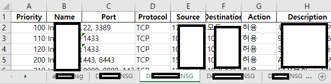 각 NSG는 시트로 저장됩니다.