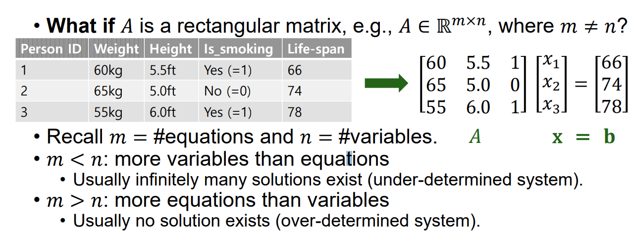 over-determined system : 𝑚 > 𝑛: 해가 없다.