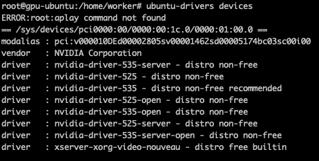 ubuntu-drivers autoinstall # (혹은 apt install nvidia-driver-535 등 원하는 패키지 선택)