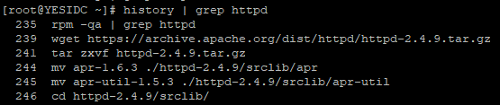 history | grep httpd