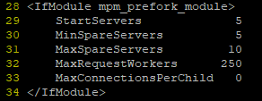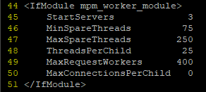 # vi /home/httpd/conf/extra/httpd-mpm.conf