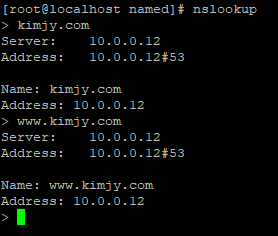 위의 설정은 캐싱 네임서버로는 사용할 수 없고, 이 서버의 존파일에 있는 내용만 답변합니다.