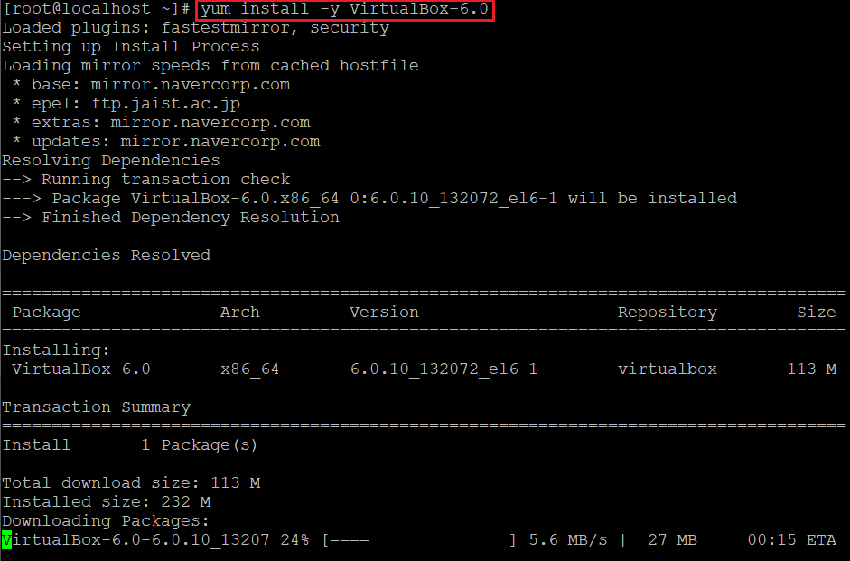 Importing GPG key 0x98AB5139: Userid: "Oracle Corporation (VirtualBox archive signing key) <info@virtualbox.org>" From : https://www.virtualbox.org/download/oracle_vbox.asc Is this ok [y/N]: y