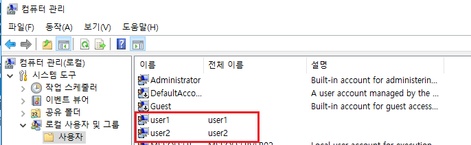 서버 관리자 - 도구 - 컴퓨터 관리 - 로컬 사용자 및 그룹