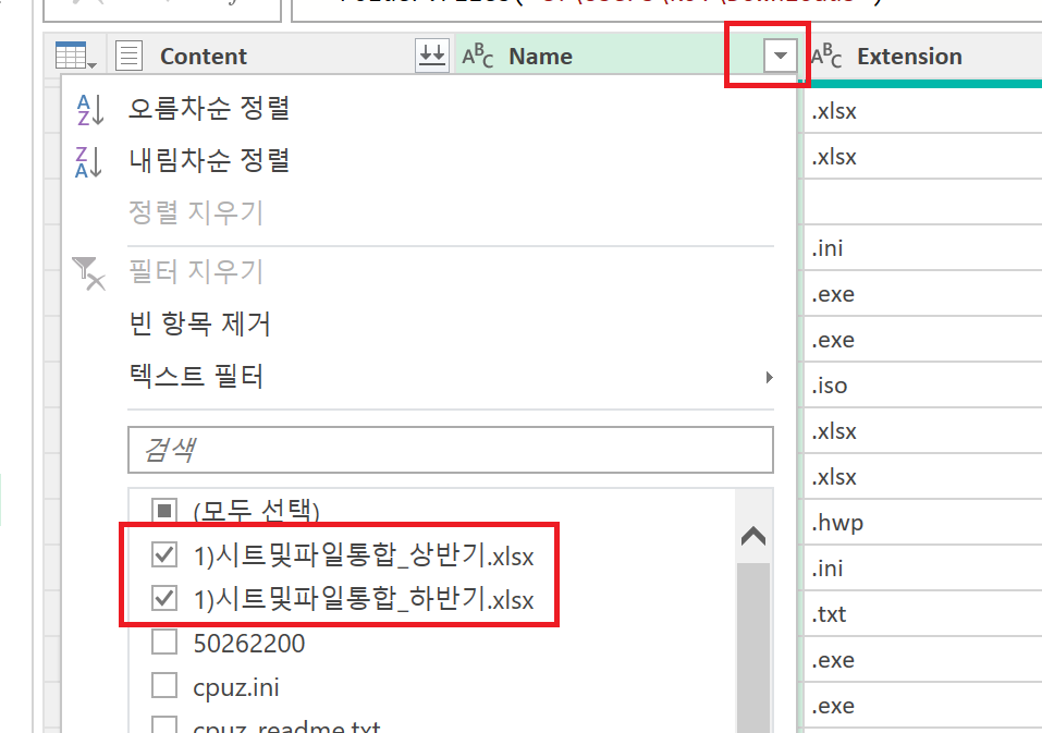 엑셀 새로만들기(목적파일) > 데이터 가져오기 > 파일 > 파일 선택 혹은 여러개 선택 >