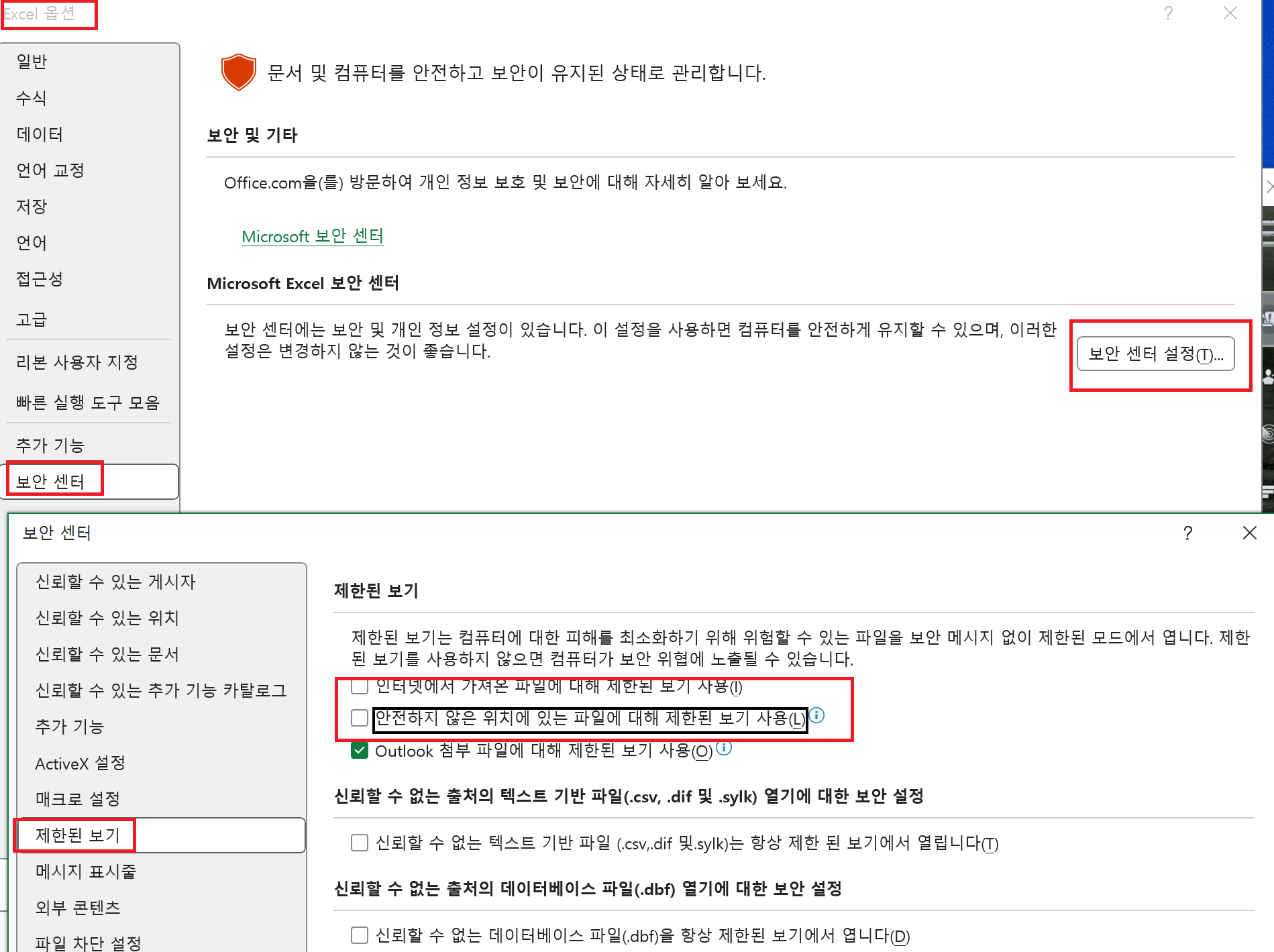 해결 방법1) 목적파일을 종료 후 대상파일 저장 후 목적파일 새로고침