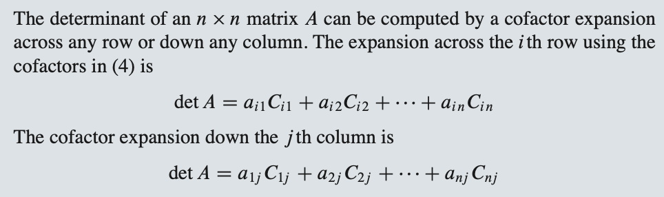 요약 : cofactoer로 행렬식을 구하면 비효율적이다.