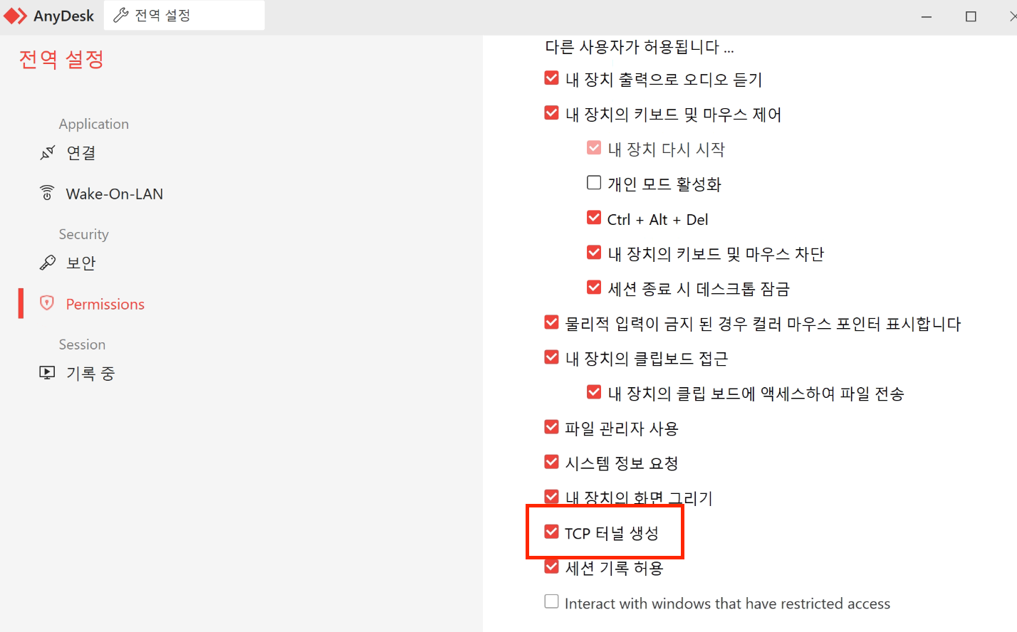 2-3. Anydesk 설정 - TCP 터널 생성